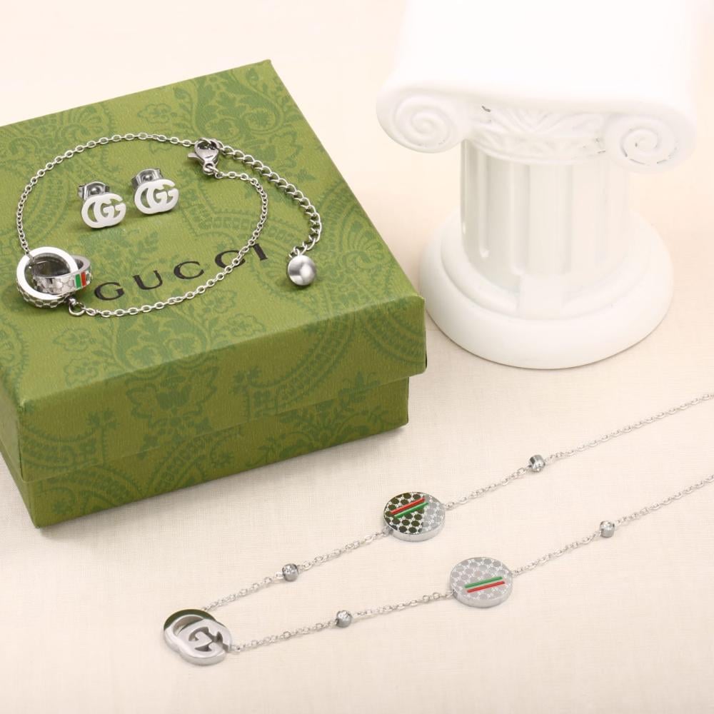 اكستسوارات قوتشي لون ذهبي مع سلسال مع حلق وأساوره مع الملحقات